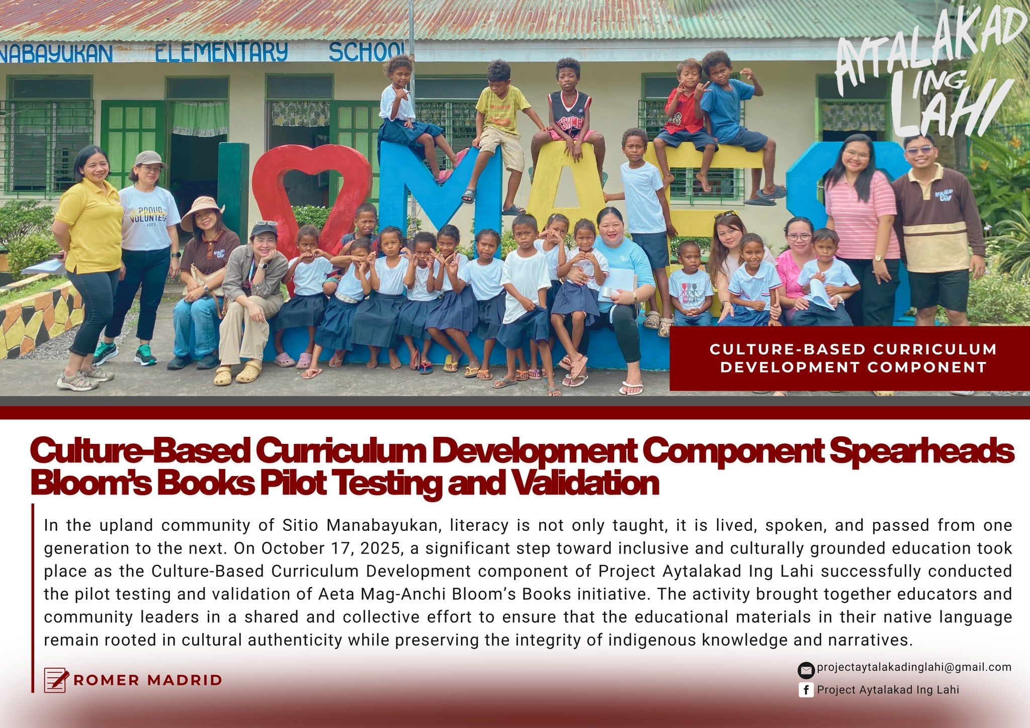 Through this initiative, this is to guarantee that the curriculum aligns with the lived experiences of the Aeta Mag-Anchi community and meets educational standards.