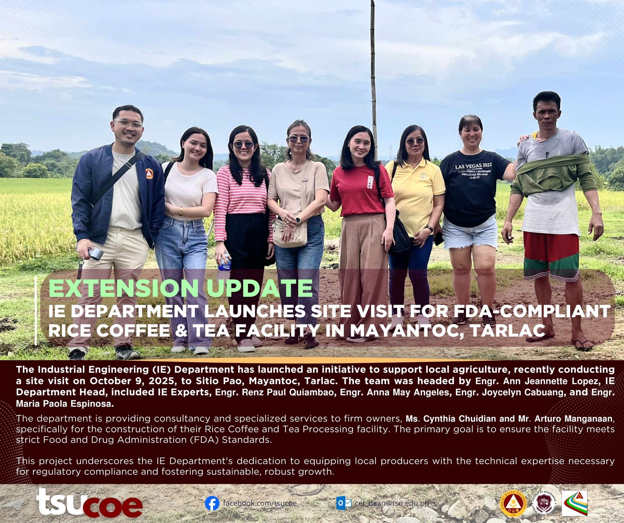 IE Department Conducts Site Visit for FDA-Compliant Rice, Coffee & Tea Facility in Mayantoc, Tarlac
