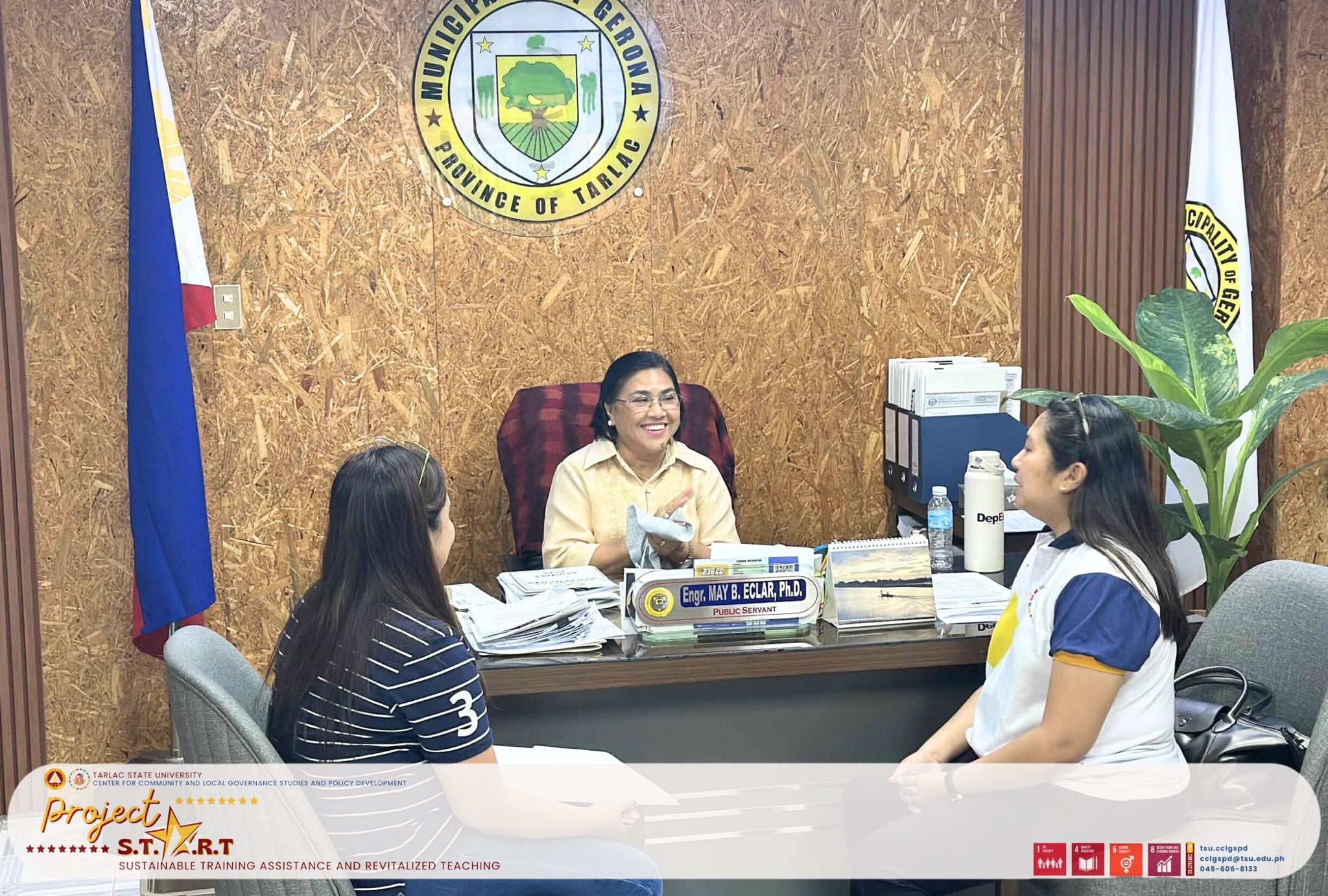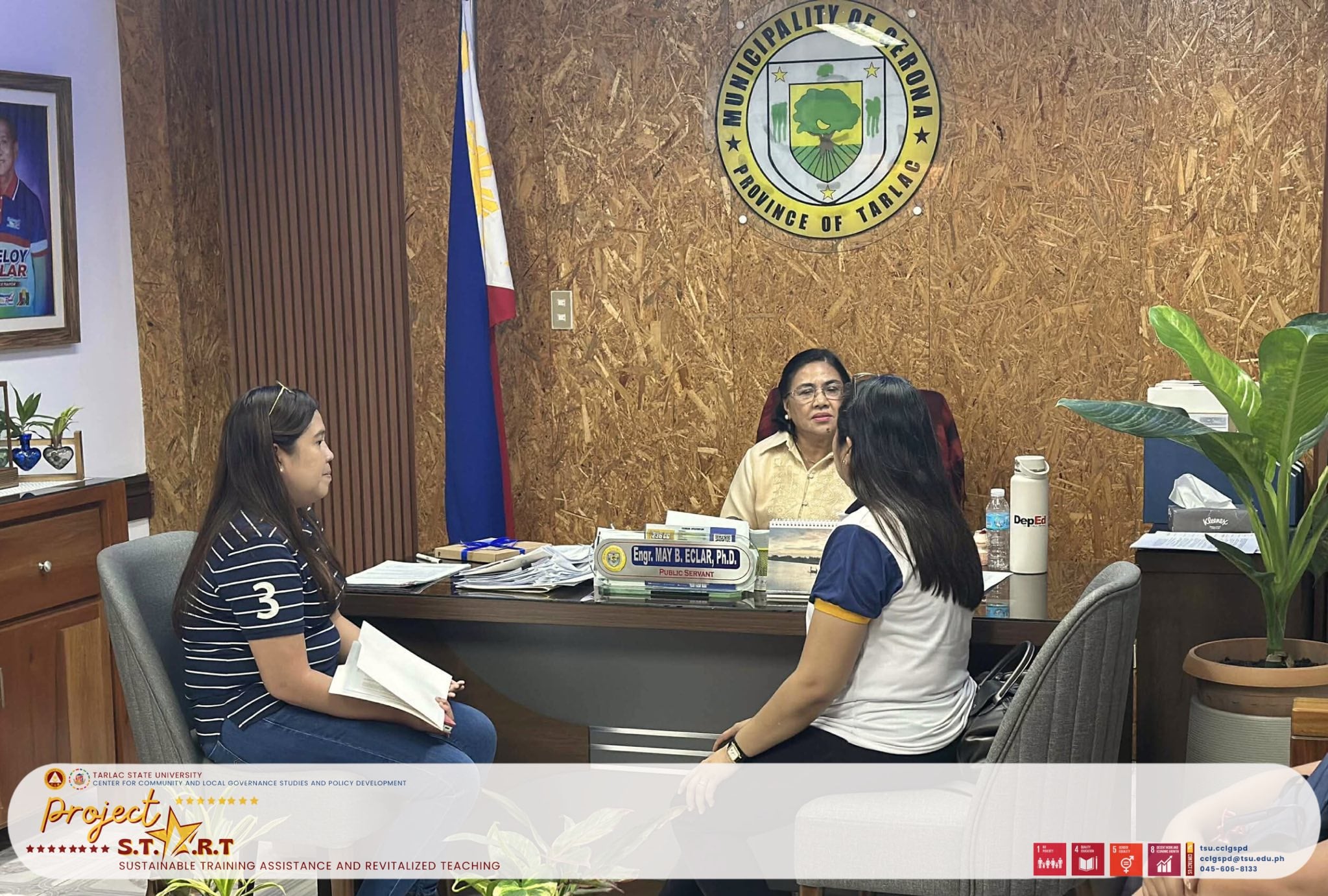 The CCLGSPD Team, headed by Dr. Cynthia G. Quiambao, paid a courtesy call to Hon. Mayor May B. Eclar to discuss Project START -UP (Sustainable Training Assistance and Revitalized Teaching–Upskilling Performance.)