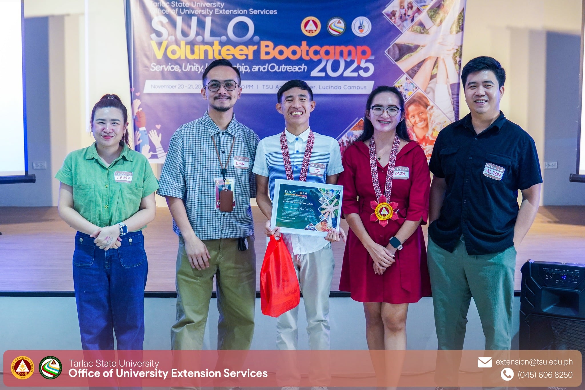 The SULO (Service, Unity, Leadership, and Outreach) Volunteer Bootcamp, spearheaded by the Office of University Extension Services (OUES) through its Volunteerism Management Department (VMD), successfully concluded on November 20–21 at the TSU University Amphitheater. Peace Corps volunteers, humanitarian partners, and student leaders from various campus organizations gathered for a two-day intensive program centered on ethical volunteerism, leadership development, and community-responsive project planning.